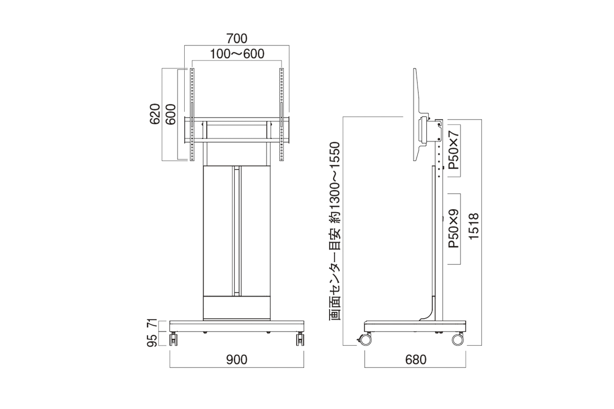 外形寸法 | 幅 900 × 奥行き 680 × 高さ 1518 (mm) |