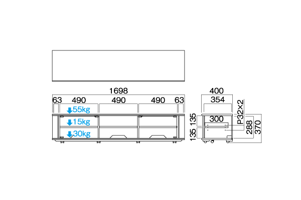 | 外形寸法 | 幅 1698 × 奥行き 400 × 高さ 370 (mm) |